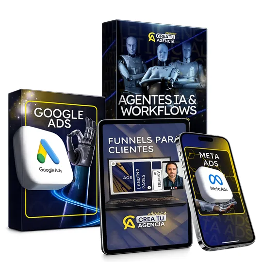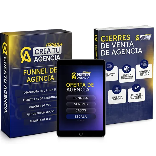 - Funnel de agencia (plantillas con landing pages, copys, automatizaciones, agente y diseño web profesional).